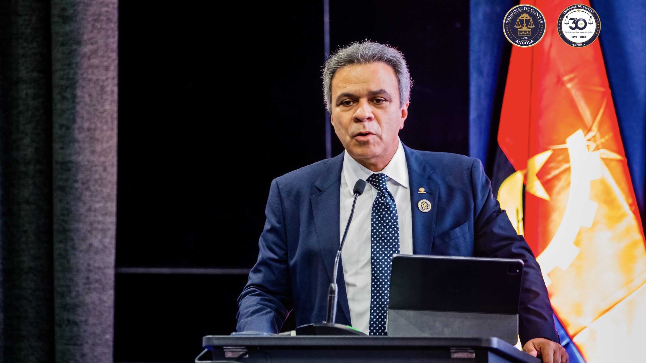 O presidente da Associação dos Membros dos Tribunais de Contas do Brasil (Atricon), Edilson Silva, ministrou palestra durante as Jornadas Científicas alusivas ao 30º aniversário do Tribunal de Contas de Angola, realizadas no Palácio da Justiça, em Luanda.