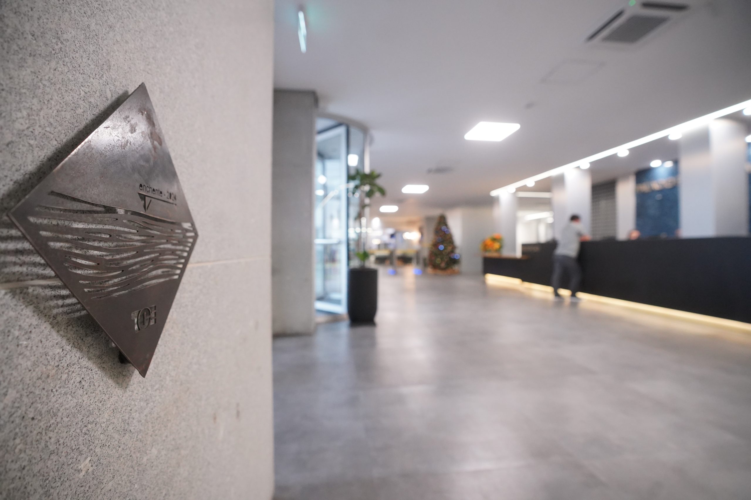Placas com marcas das enchentes são símbolos de memória para o TCE-RS