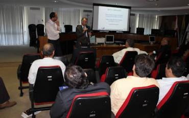 O conselheiro vice-presidente Inaldo da Paixão Santos Araújo, o conselheiro Pedro Henrique Lino, engenheiros, arquitetos, auditores e técnicos do Tribunal de Contas do Estado da Bahia ouviram, atentamente, na manhã de terça-feira, dia 16 de outubro, no Plenário Cons. Lafayette Pondé, palestra dos engenheiros Pedro Paulo Piovesan de Farias e Pedro Jorge Rocha de Oliveira, presidente e vice-presidente, respectivamente, do Instituto Brasileiro de Auditoria de Obras Públicas sobre a atuação do Ibraop, “o papel que ele encontra no cenário nacional no que diz respeito a Obras Públicas”, disse Pedro Paulo.