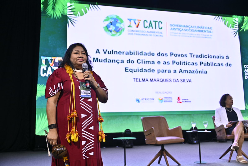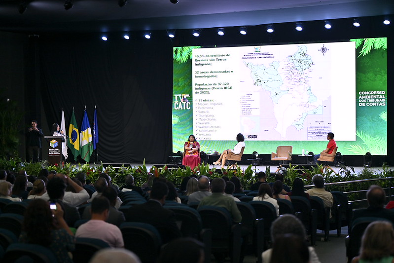 Abrindo a programação da tarde desta sexta-feira (24), último dia do IV Congresso Ambiental dos Tribunais de Contas (CATC), o painel “A vulnerabilidade dos povos tradicionais à mudança do clima e as políticas públicas de equidade para a Amazônia” transformou o auditório do Centro Amazônico de Fronteiras (CAF) da Universidade Federal de Roraima (UFRR), em Boa Vista, em um espaço de emoção e escuta.