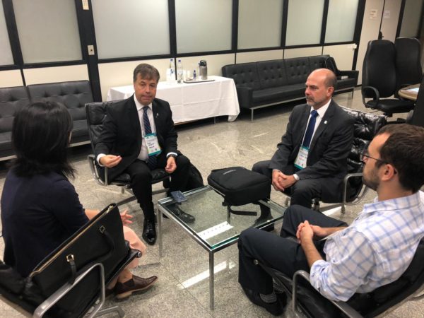 O presidente Fábio Nogueira e o Vice-Presidente de Desenvolvimento do Controle-Externo, Carlos Ranna de Macedo, estiveram reunidos com a Diretora de Operações da Transparência Brasil, Juliana Sakai, e com o Consultor do Centro de Conhecimento Anticorrupção da Transparência Internacional, Guilherme Siqueira, ambos interessados em conhecer a metodologia do Marco de Medição de Desempenho dos Tribunais de Contas.
