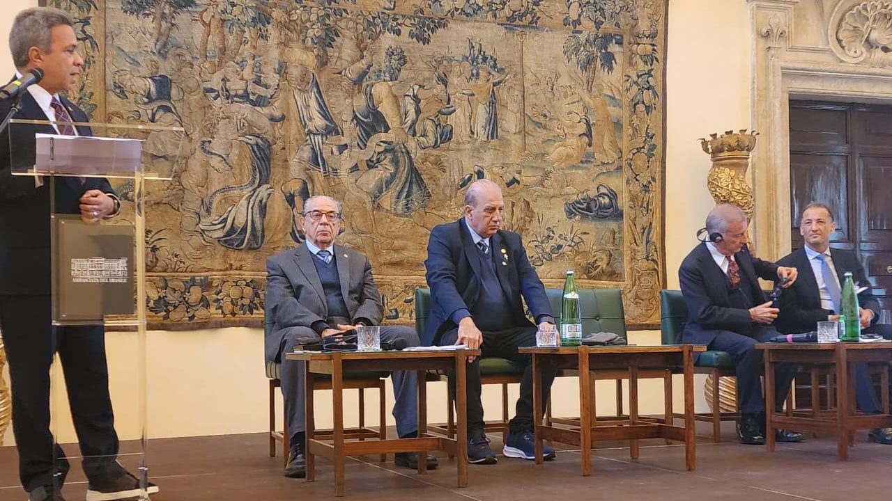 A Conferência Bilateral Brasil–Itália realizada nesta quinta-feira reuniu diversas autoridades na Embaixada do Brasil em Roma. Entre os presentes estavam o procurador-geral da República, Paulo Gonet, o ministro Benedito Gonçalves, do Superior Tribunal de Justiça (STJ), o ministro Gilmar Mendes, do Supremo Tribunal Federal (STF) e o ex-ministro do STF Luís Roberto Barroso.