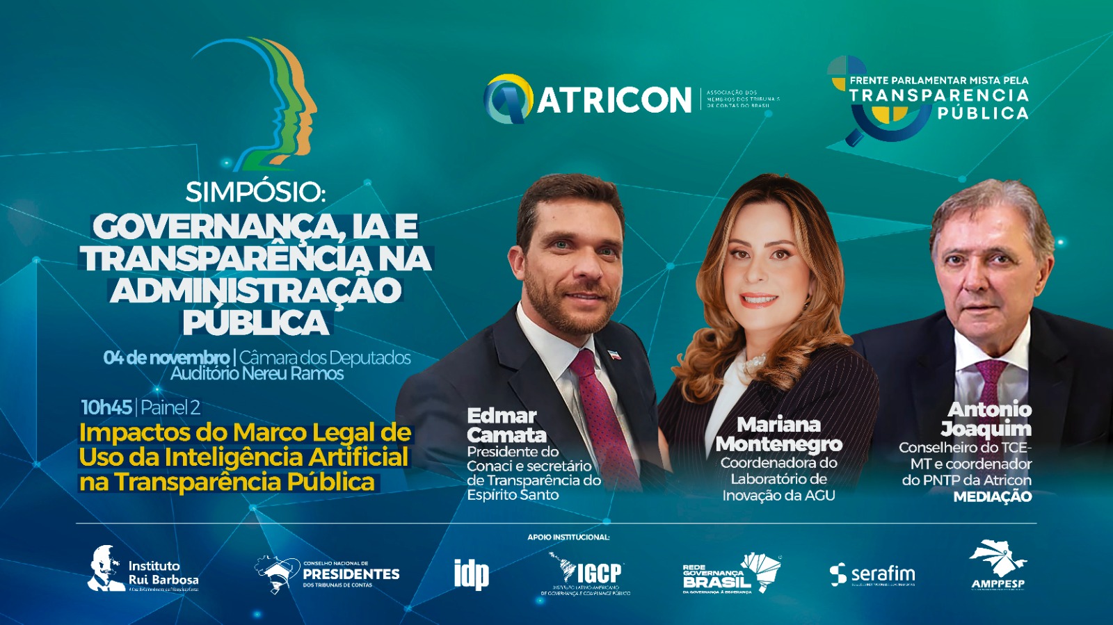 O painel contará com a participação de Mariana Montenegro, coordenadora do Laboratório de Inovação da Advocacia-Geral da União (AGU), e de Edmar Camata, presidente do Conselho Nacional de Controle Interno (Conaci) e secretário de Transparência do Estado do Espírito Santo. A mediação será conduzida pelo conselheiro Antônio Joaquim, coordenador do Programa Nacional de Transparência Pública (PNTP) da Associação dos Membros dos Tribunais de Contas do Brasil (Atricon).