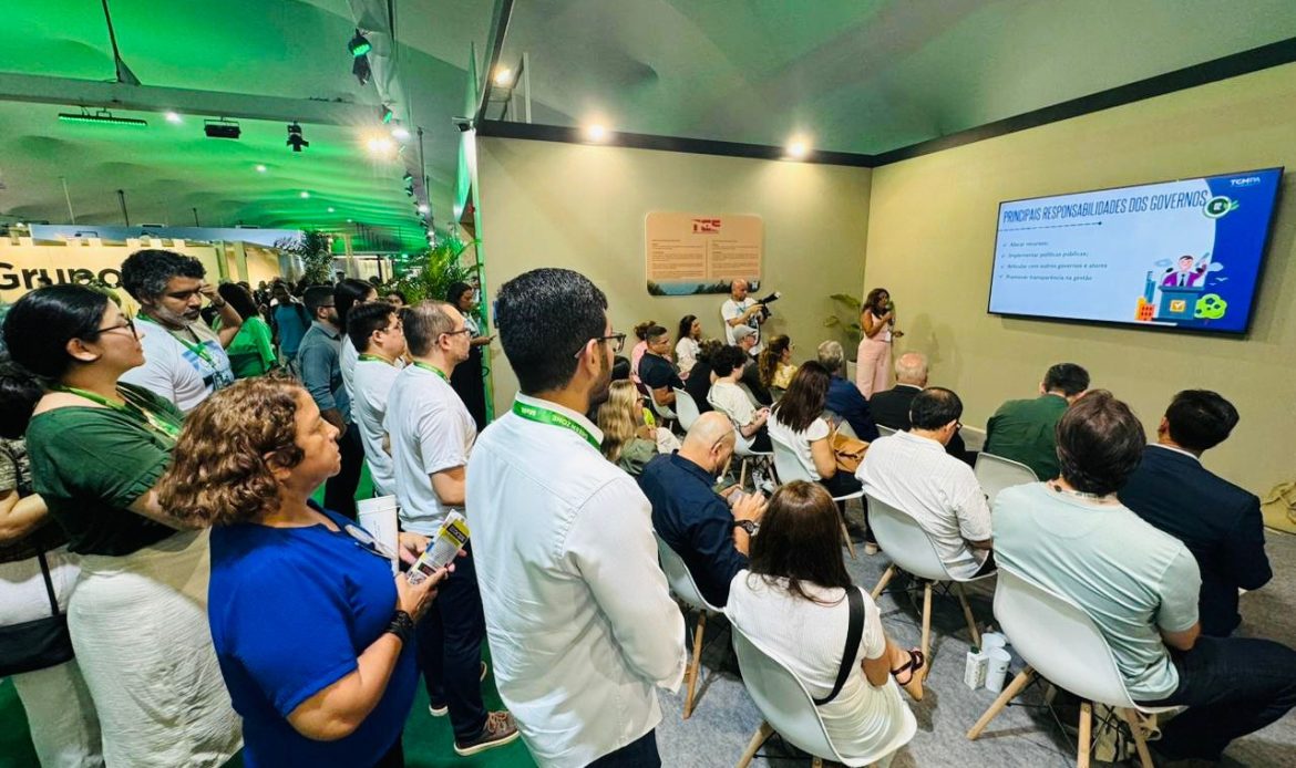 Durante a COP, o TCE-AC participou ativamente do estande dos Tribunais de Contas do Brasil, organizado pelo TCE-PA, TCM-PA e Atricon, um ambiente de integração institucional e troca de experiências entre as Cortes amazônicas. A auditora Dirlei Bersch destacou a importância dessa articulação: