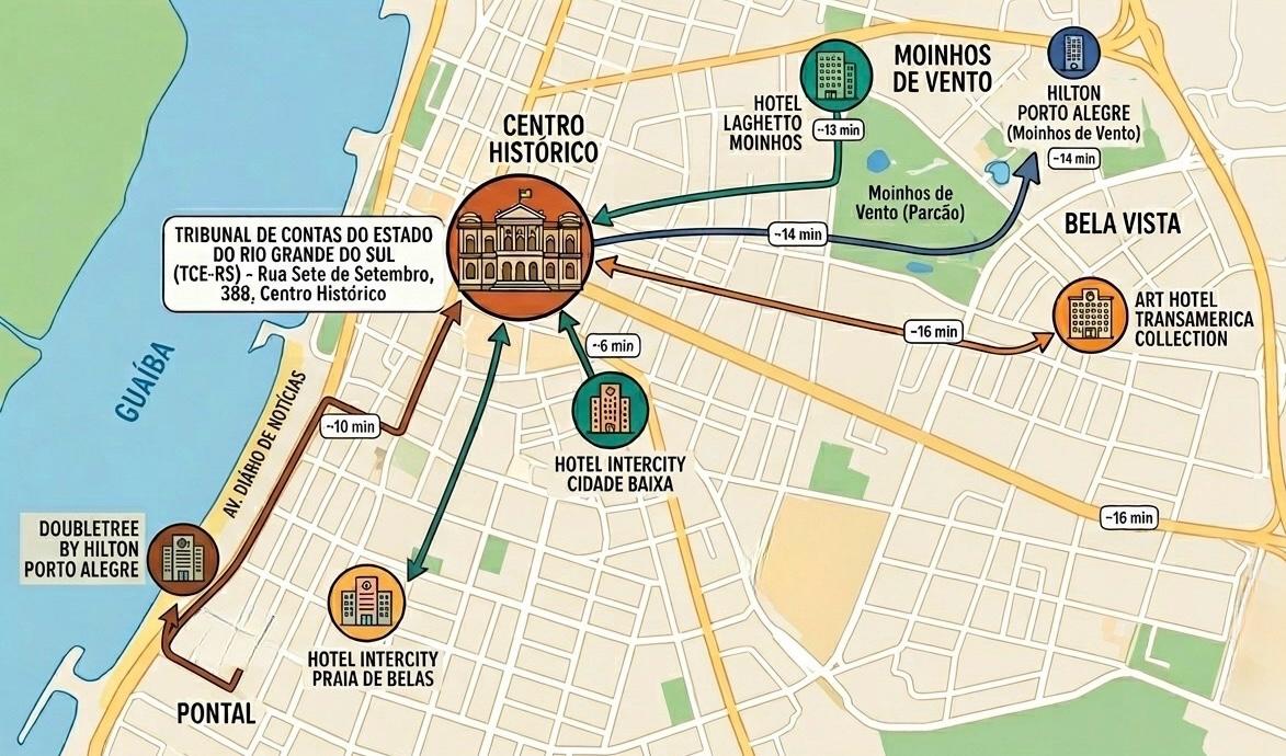 Distância do TCE-RS: 5,9 Km (15 min).