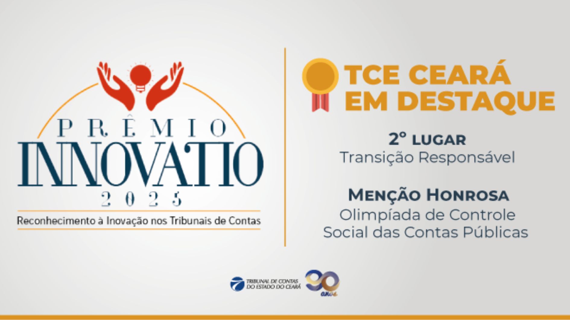 O Tribunal de Contas do Estado do Ceará foi o segundo colocado no Prêmio Innovatio 2025, com o programa “Transição Responsável: reinventando a fiscalização e a colaboração em mudança de governo”. A primeira colocação foi para o TCE Rondônia e a terceira para o TCE de São Paulo.